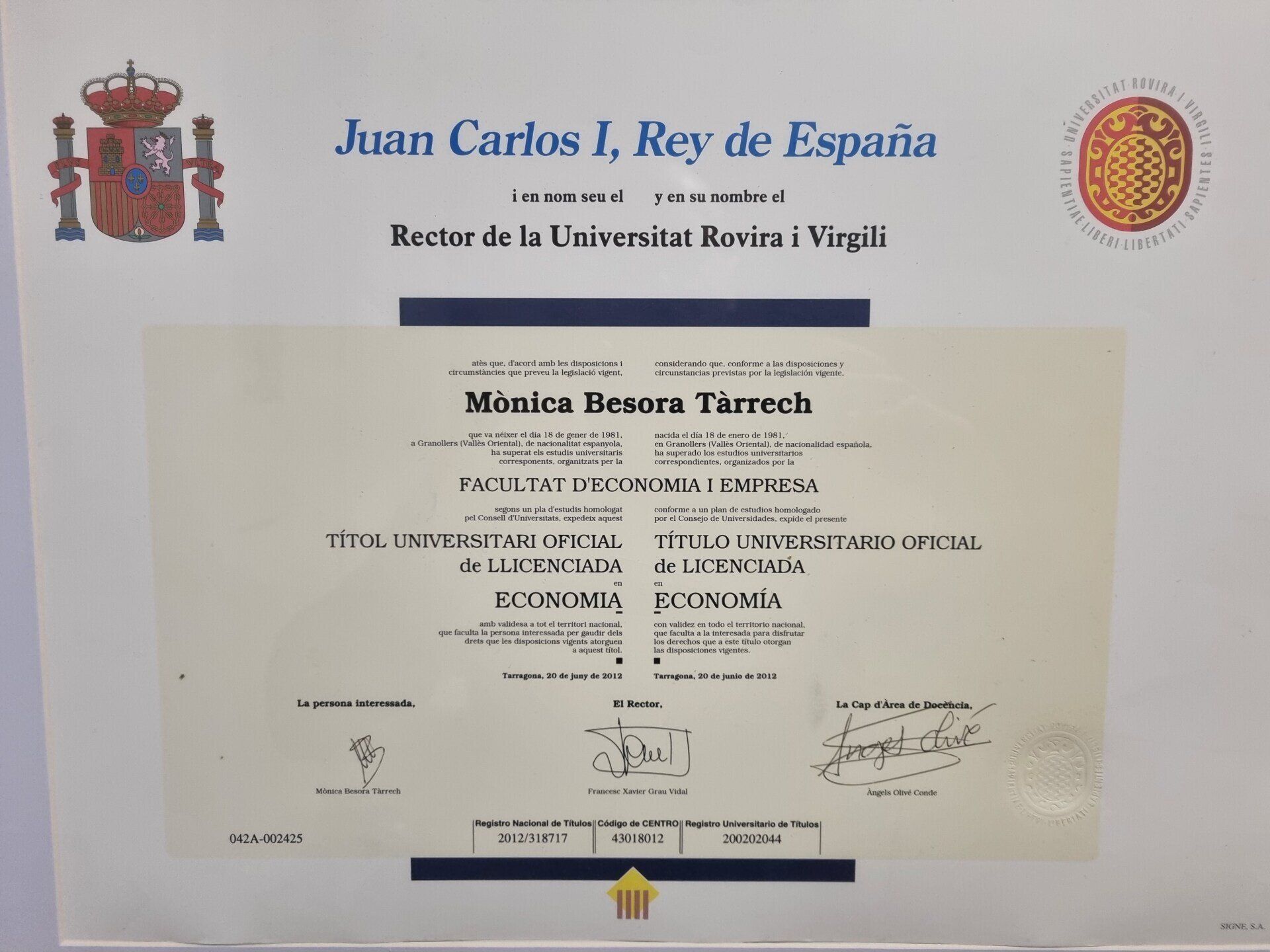 La Mònica, es va incorporar a l´equip l´any 2018, provinent del sector bancari (on va desembolupar durant 15 anys diferents carregs en diverses arees), es Llicenciada en Economia per la universitat rovira i virgili de tarragona.